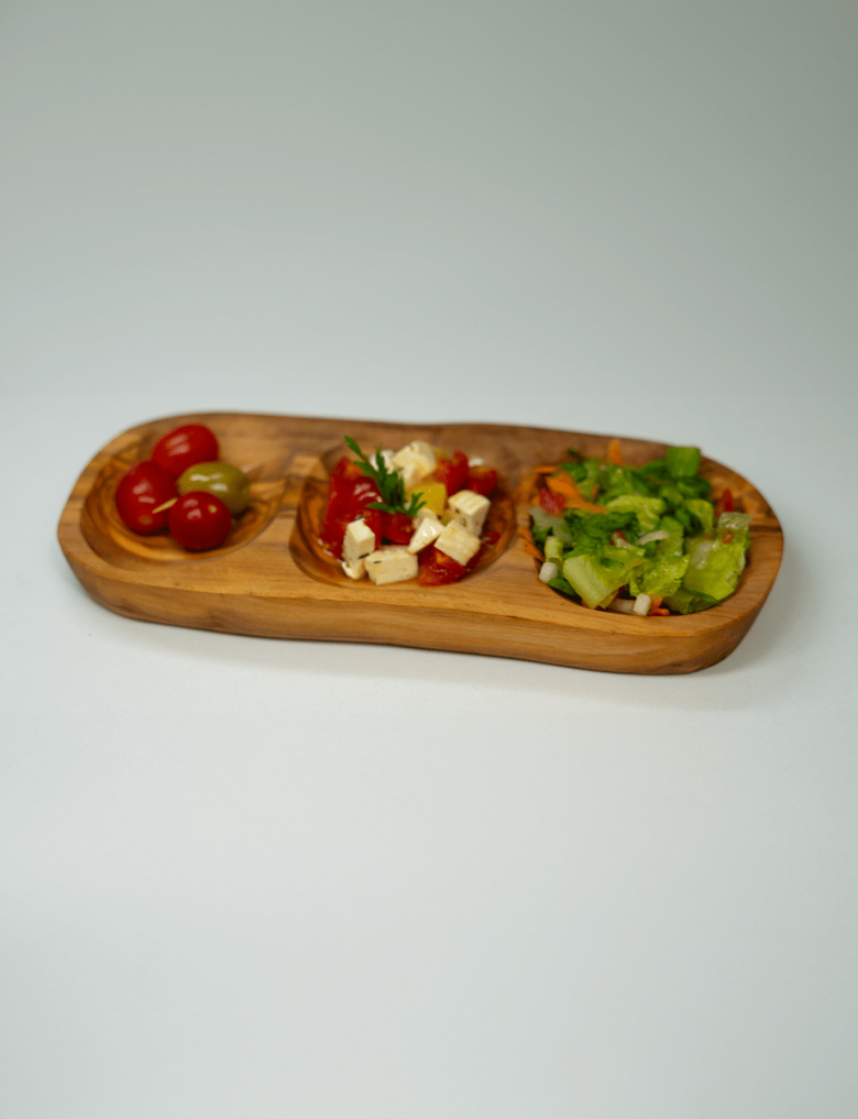 This handcrafted appetizer dish, made from Tunisian wood, is perfect for serving snacks or small bites. Its compact design and natural wood grain make it a stylish addition to any table setting.