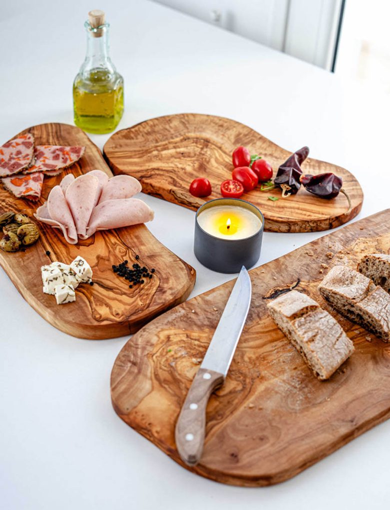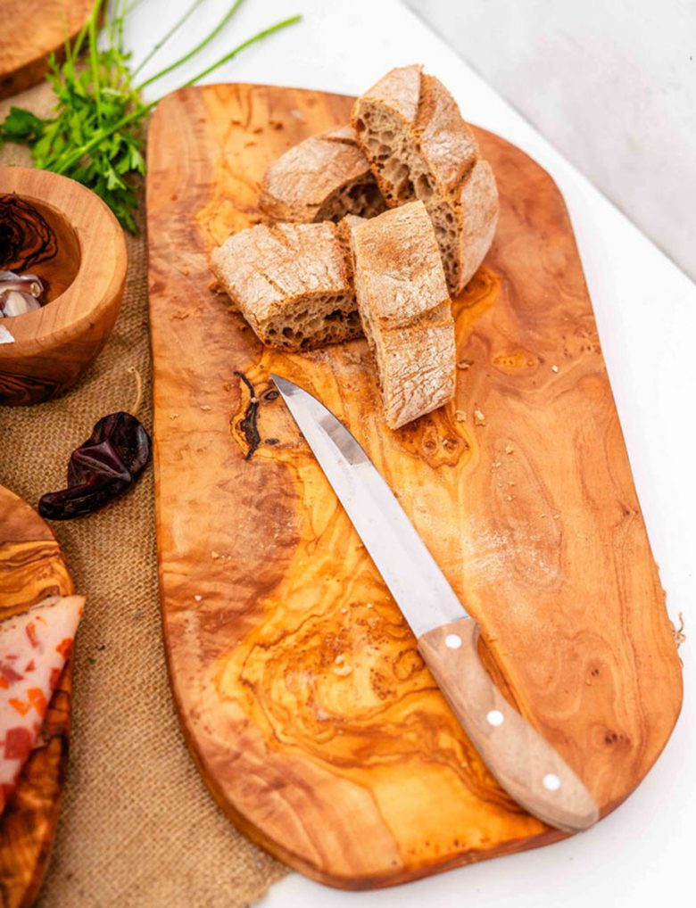 This handcrafted wooden chopping board is made from premium Tunisian wood, offering a smooth, durable surface for all your cutting needs. Its handle-free design provides ample space for food preparation or serving.