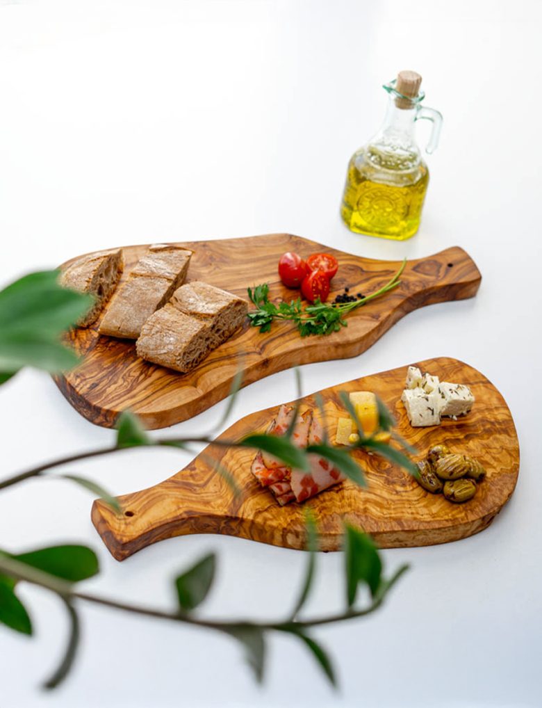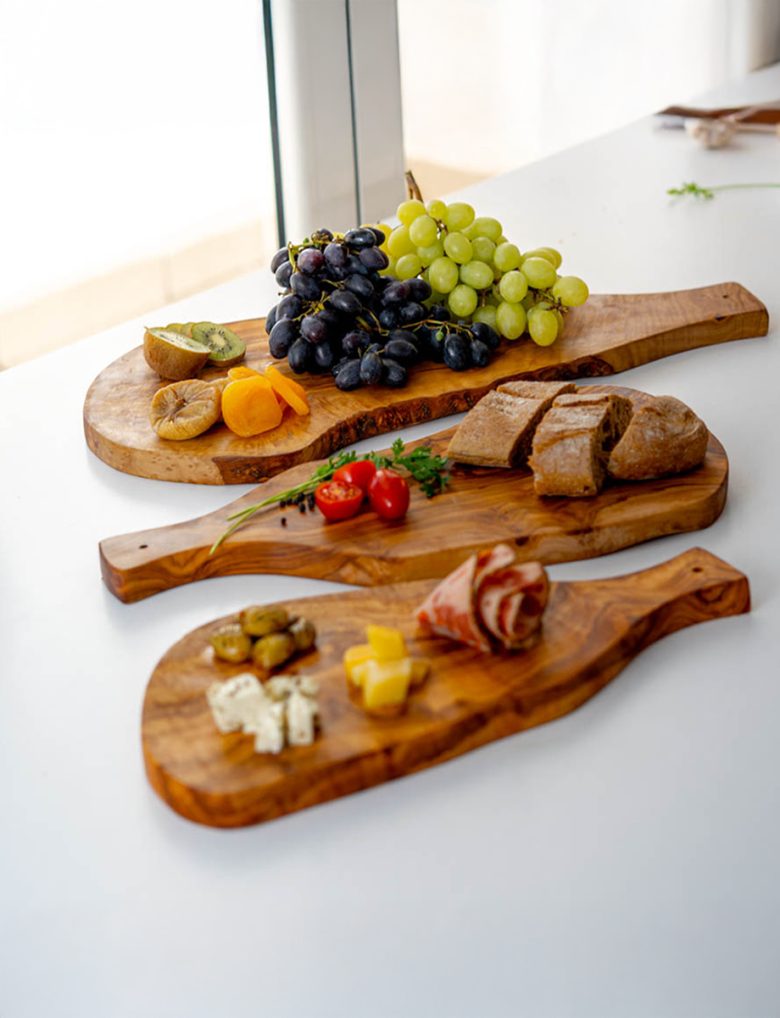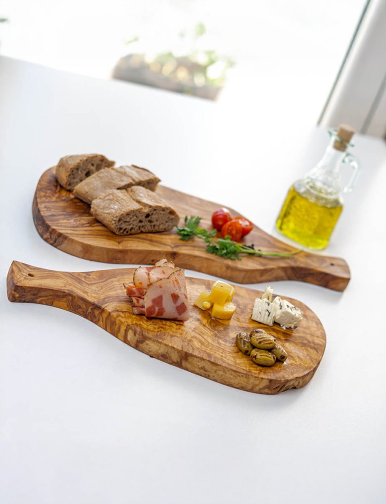 This handcrafted chopping board, made from durable Tunisian wood, features a built-in handle for easy handling and storage. Its smooth surface is perfect for all your food preparation needs.