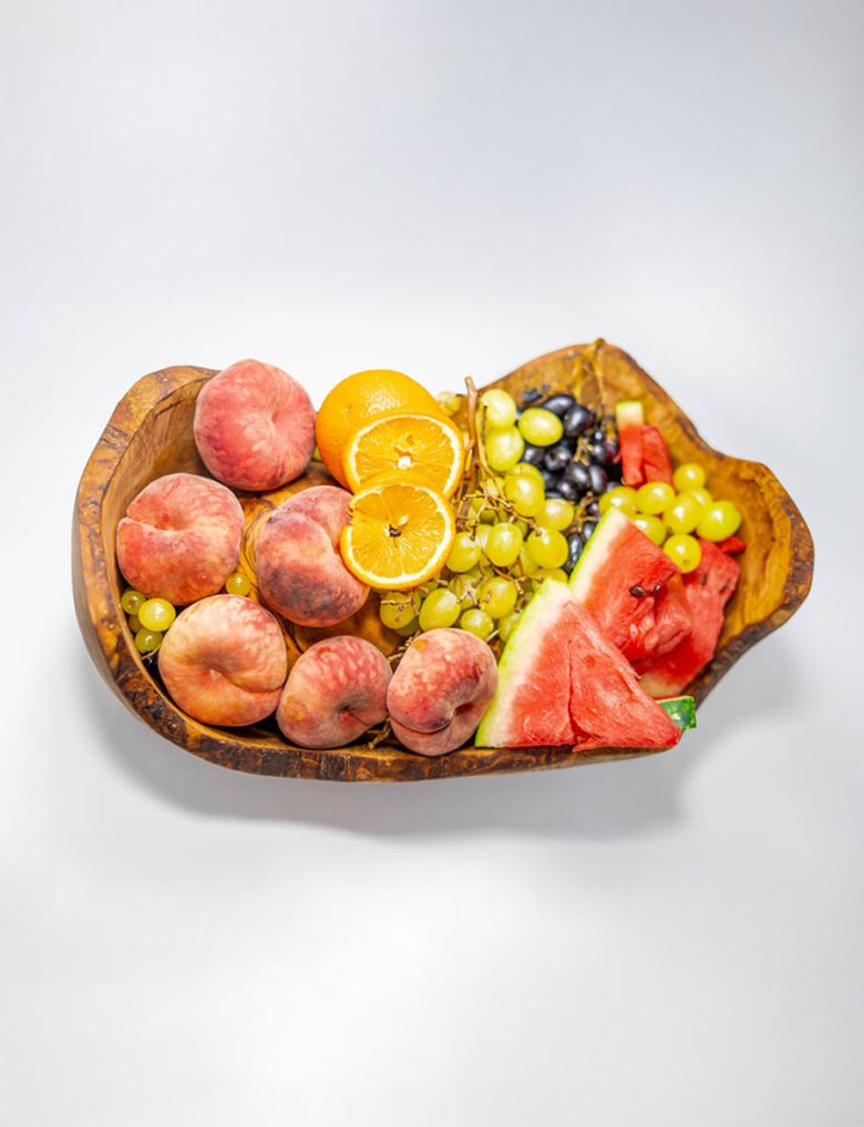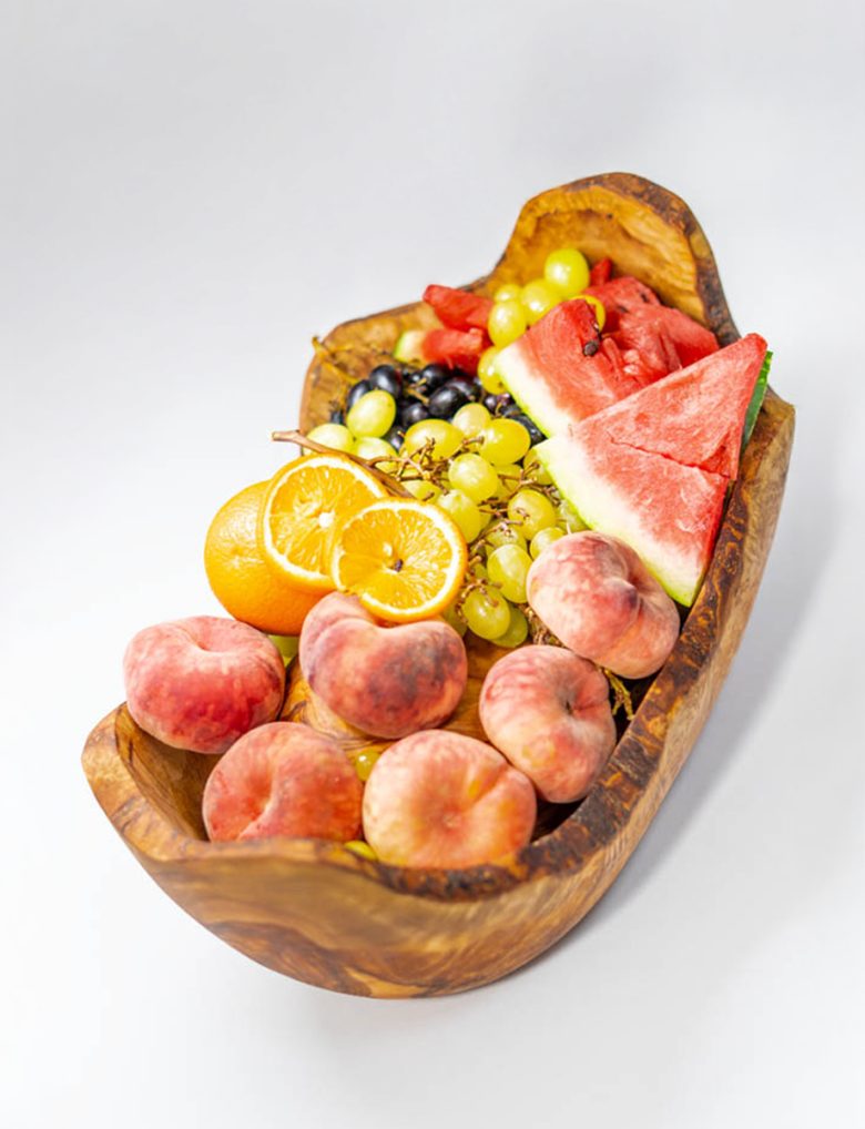 This organic-shaped fruit basket, crafted from Tunisian wood, showcases smooth, flowing curves that highlight its natural design. Perfect for displaying fruits, it adds an artistic and rustic touch to any kitchen or dining area.