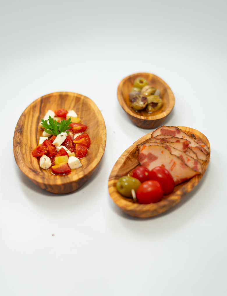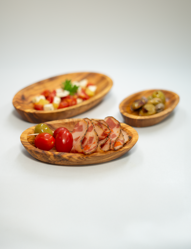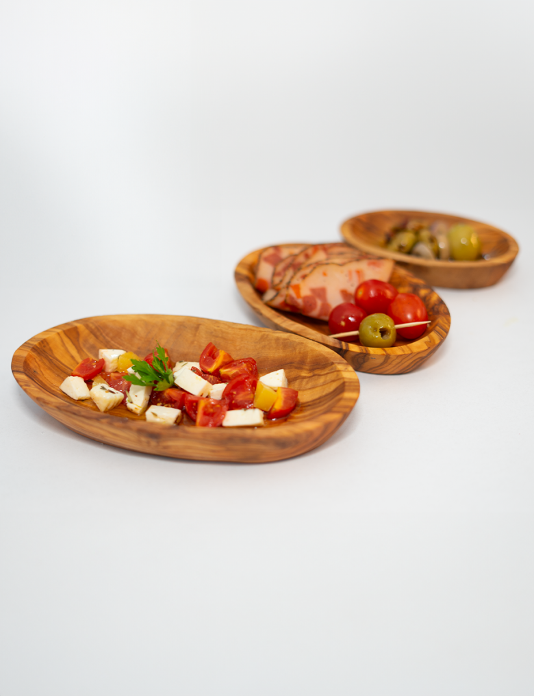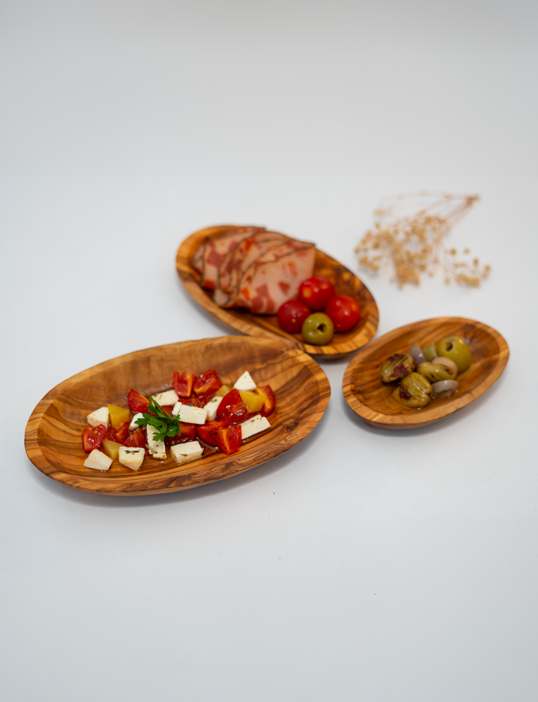 This handcrafted oval dish, made from premium Tunisian wood, features a smooth and elegant design, ideal for serving snacks or small dishes. Its natural curves and wood grain add a touch of rustic sophistication to any table.