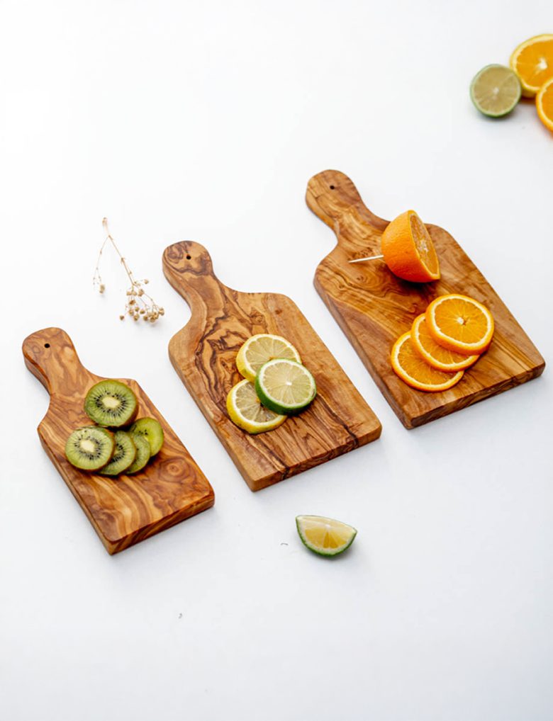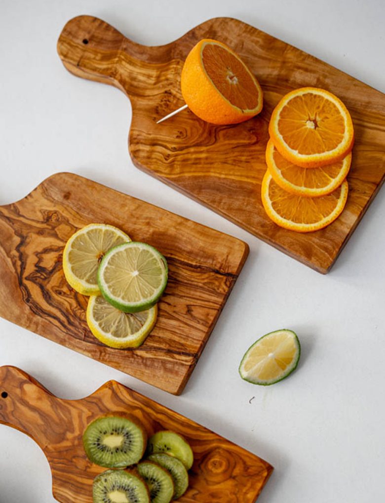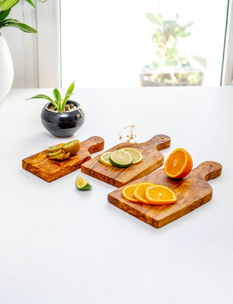 This rectangular cutting board is handcrafted from durable Tunisian wood, providing a smooth, sturdy surface for food preparation. Its sleek, simple design is ideal for both cutting and serving.