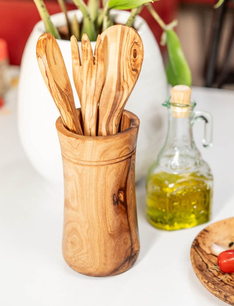 This utensil holder is designed to keep your kitchen tools organized and easily accessible. Its spacious interior accommodates a variety of utensils, while the natural wood finish adds warmth and charm to your countertop decor.