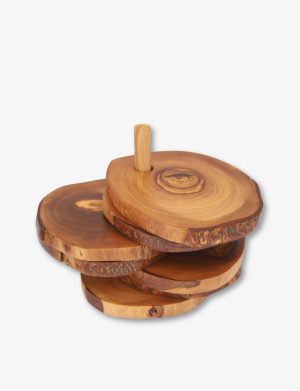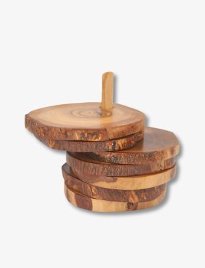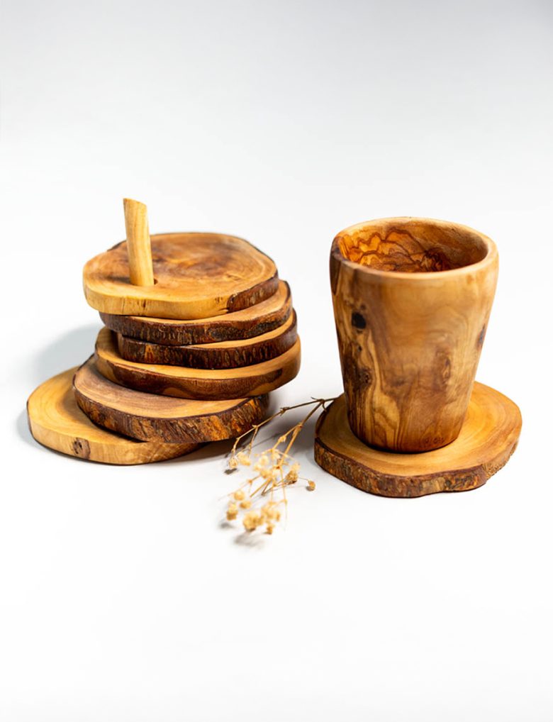 This handcrafted rustic coaster (6PCS with support) , made from high-quality Tunisian wood, features a natural finish that showcases the unique grain patterns. Perfect for protecting your surfaces, it adds a charming, earthy touch to any home decor.