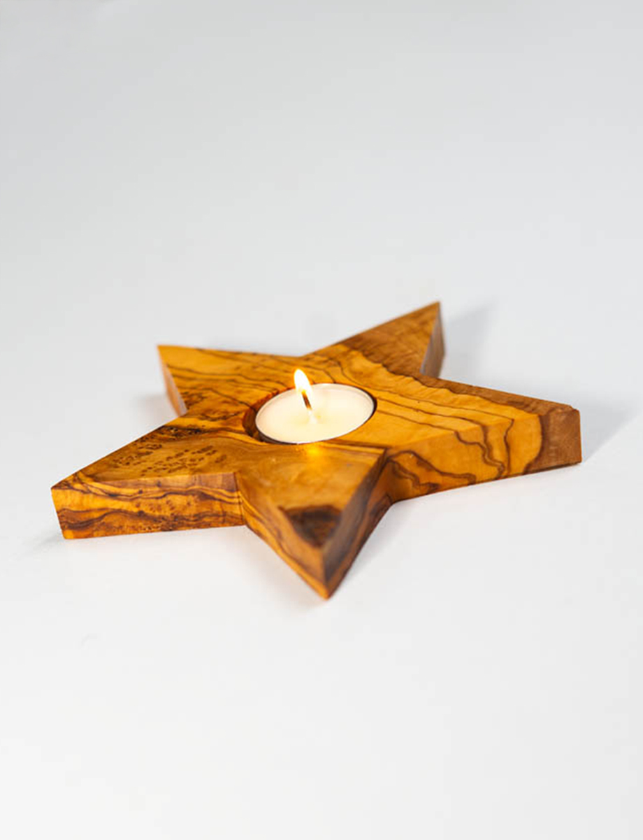 This handcrafted candle holder, made from durable Tunisian wood, features a unique design that beautifully showcases the natural grain. Its rustic charm adds warmth and elegance to any space, making it perfect for creating a cozy atmosphere.