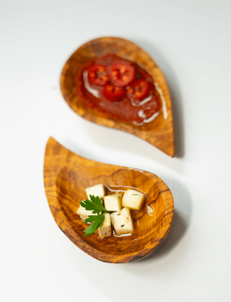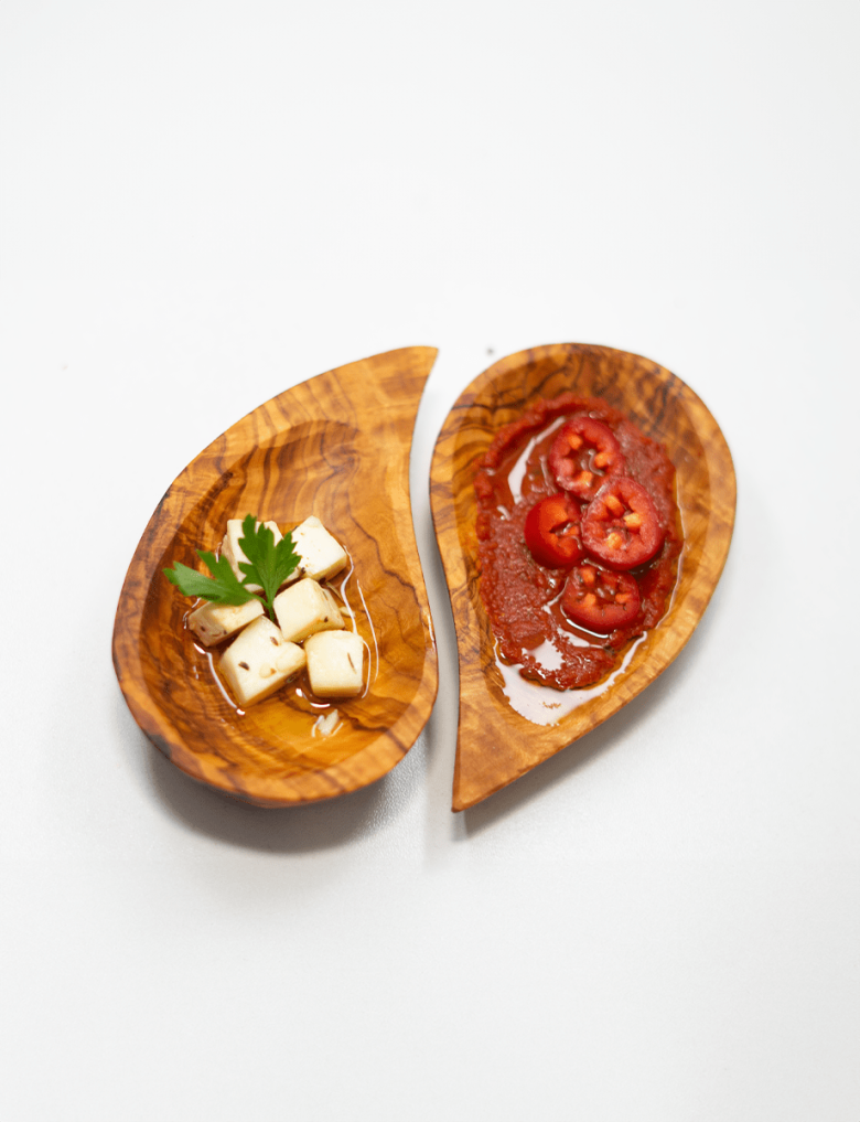 This handcrafted Ying & Yang dish, made from premium Tunisian wood, features a unique dual-section design, perfect for serving complementary snacks or appetizers. Its smooth, elegant curves add a harmonious and artistic touch to any table.